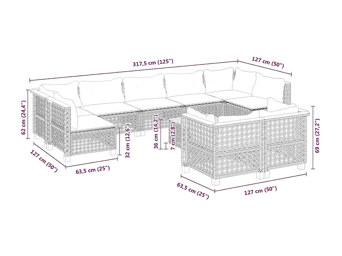 Salon de jardin avec coussins 9 pcs beige résine tressée