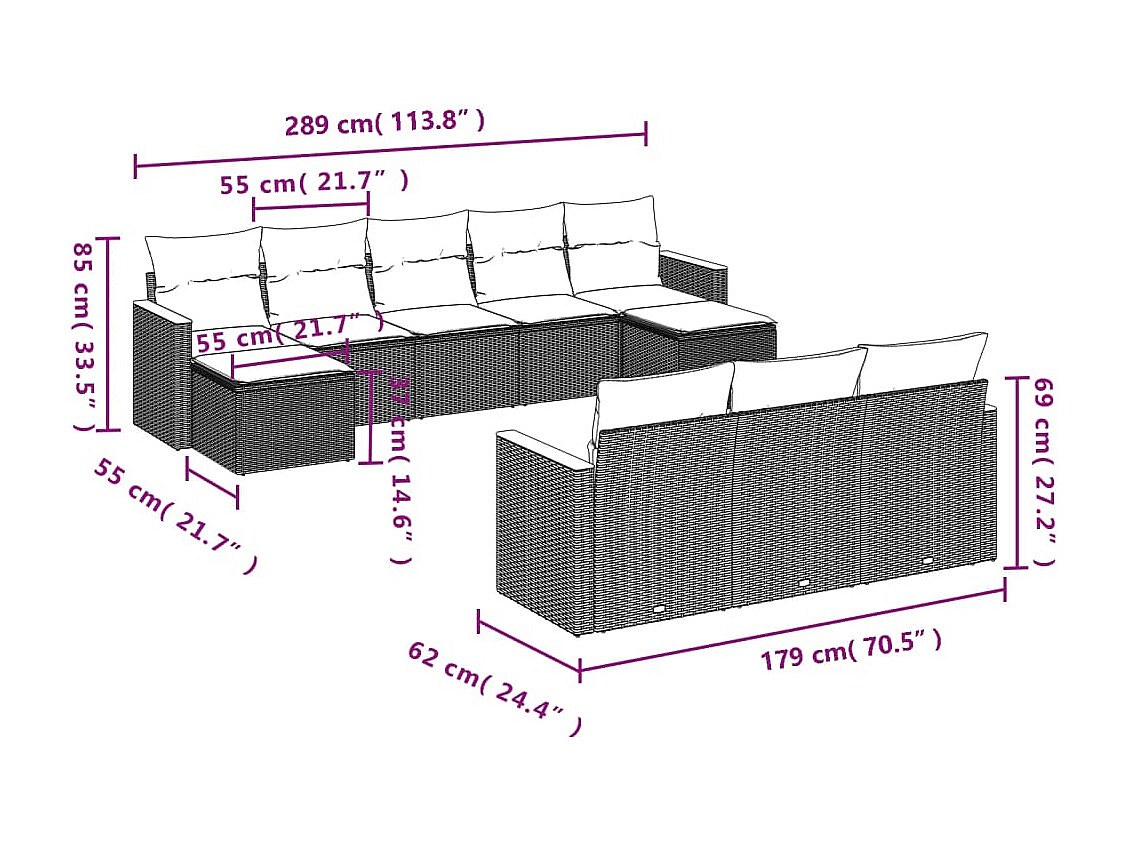Salon de jardin avec coussins 10 pcs beige résine tressée