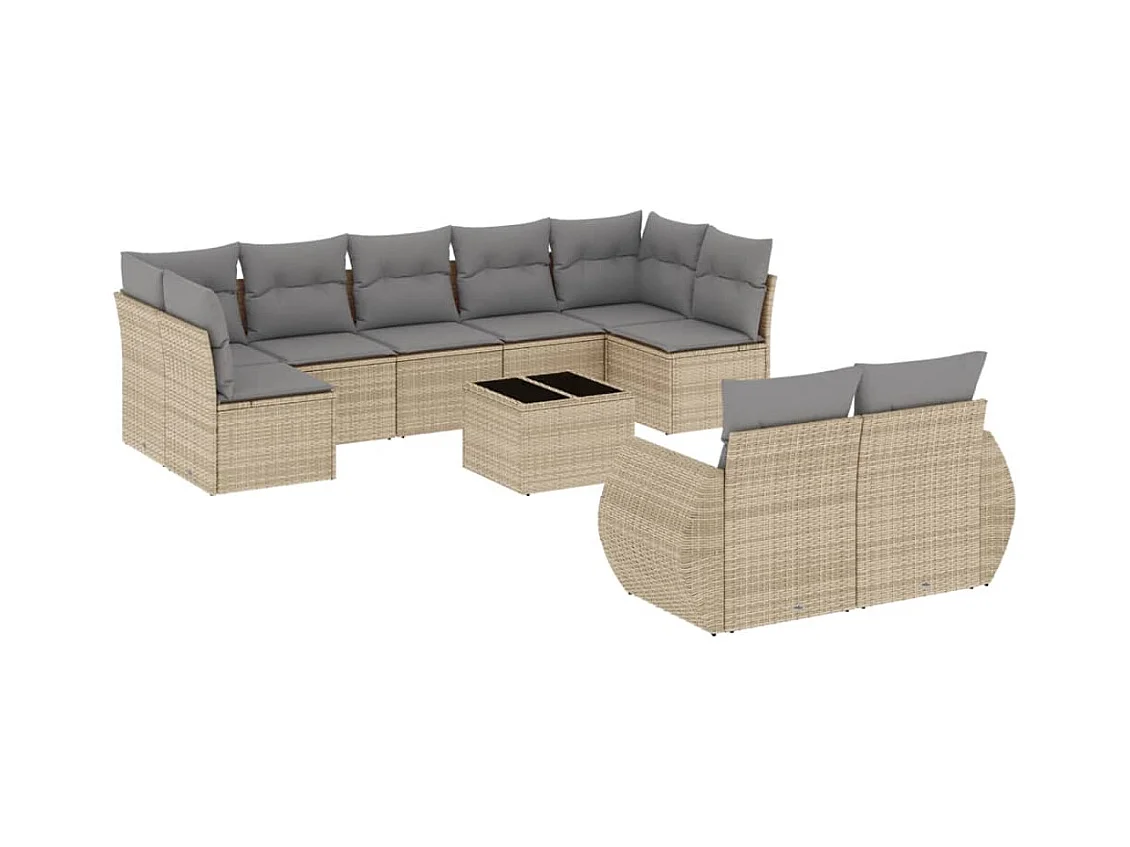 Salon de jardin avec coussins 10 pcs beige résine tressée