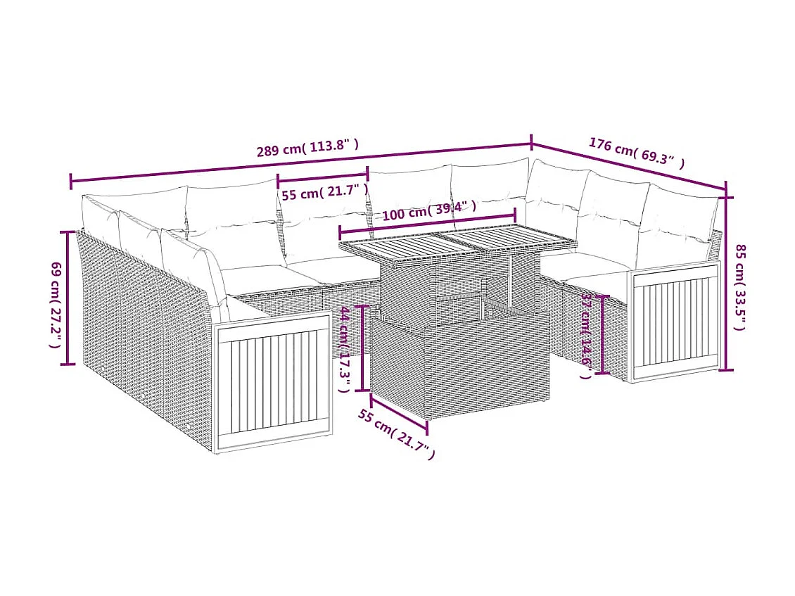 Salon de jardin avec coussins 10 pcs beige résine tressée