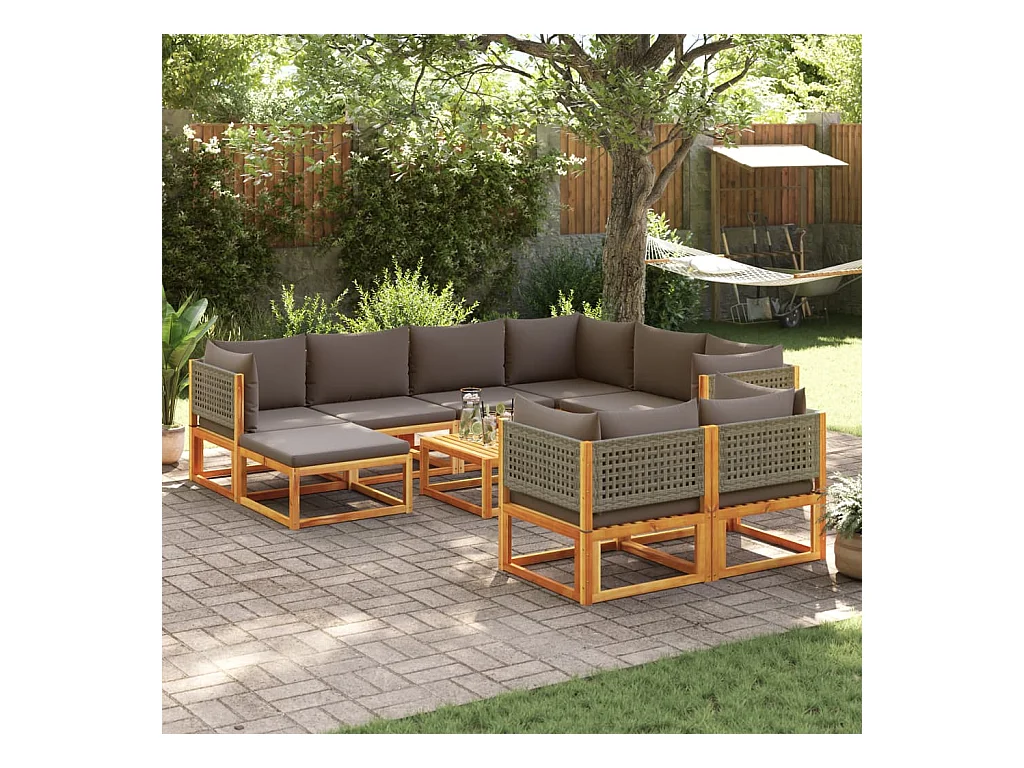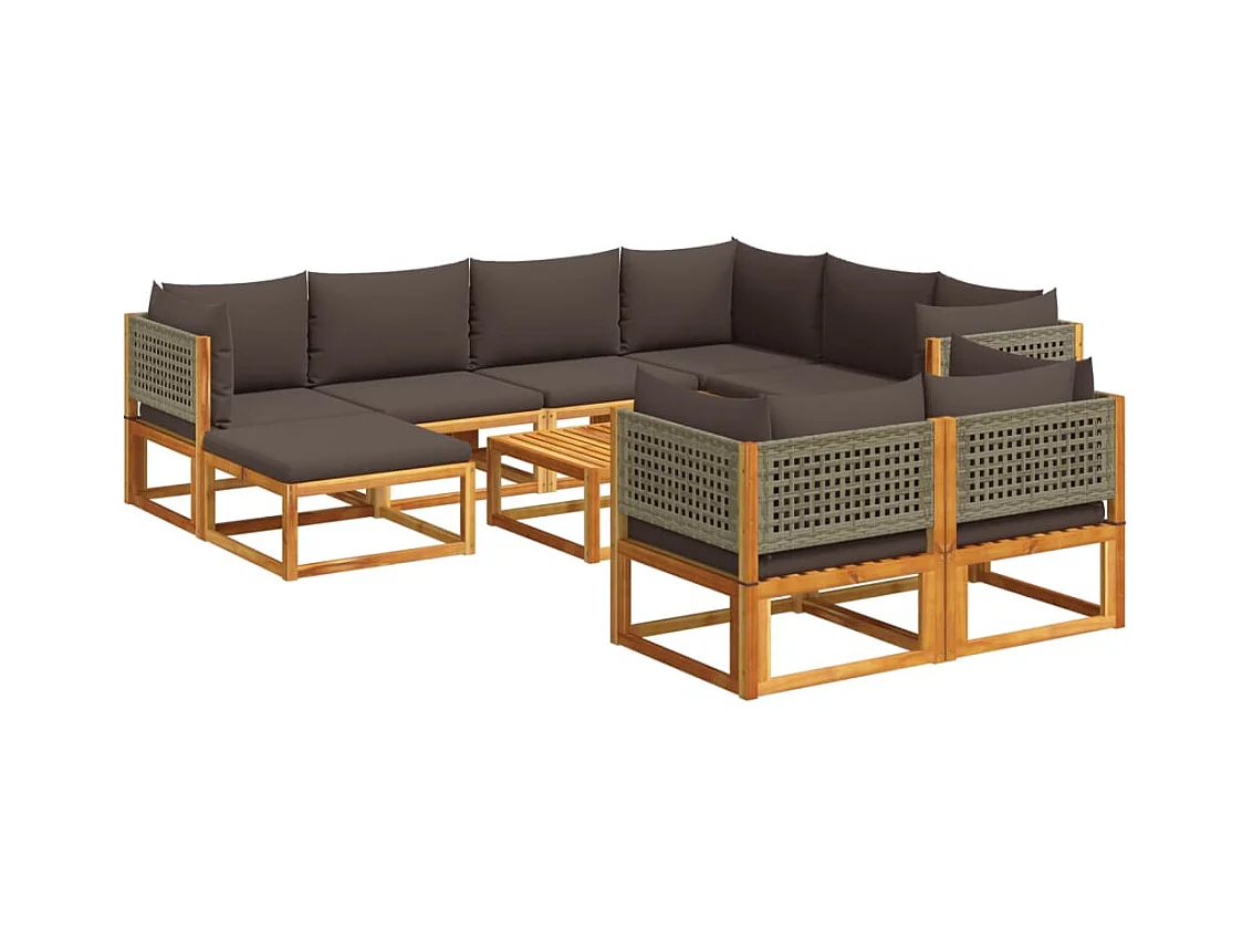 Salon de jardin avec coussins 10 pcs bois d'acacia solide
