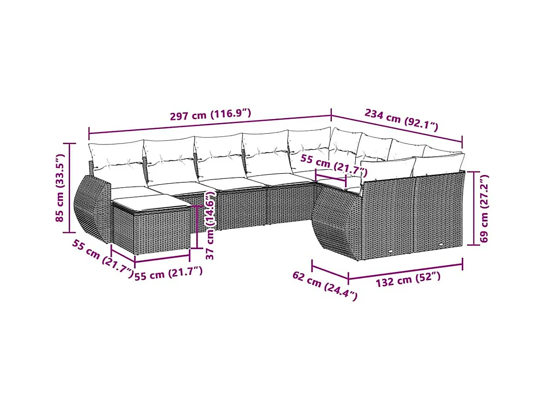 Salon de jardin avec coussins 10 pcs gris clair résine tressée