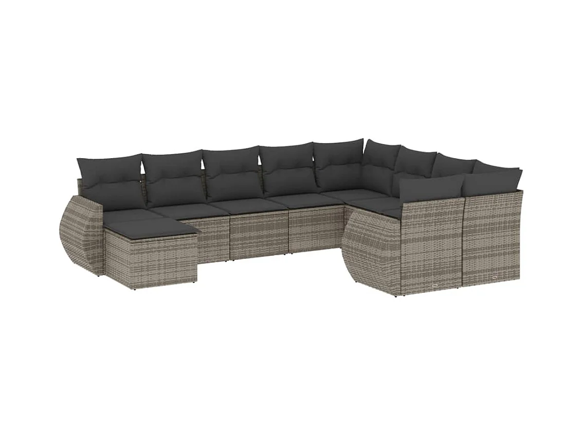 Salon de jardin avec coussins 10 pcs gris résine tressée