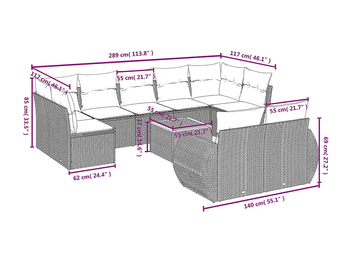 Salon de jardin avec coussins 8 pcs beige résine tressée