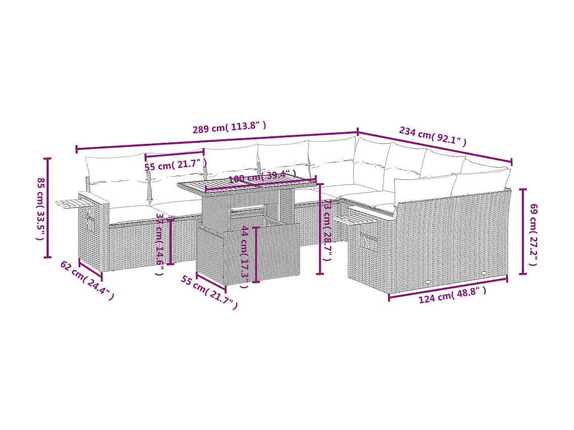Salon de jardin 11 pièces avec coussins beige résine tressée