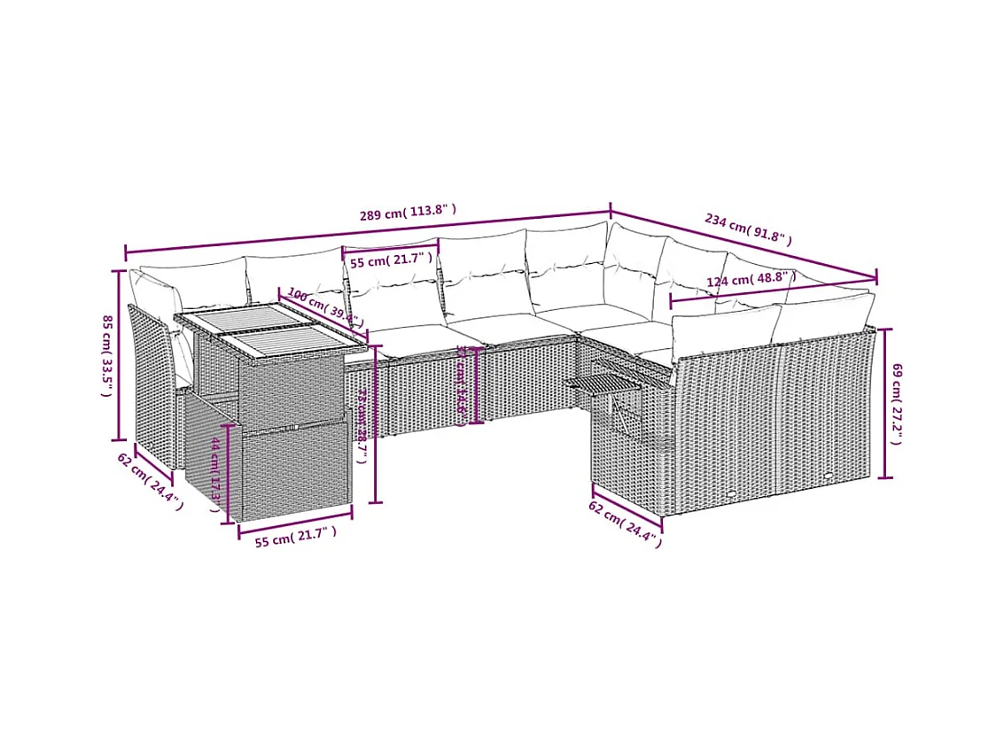 Salon de jardin avec coussins 10 pièces beige résine tressée