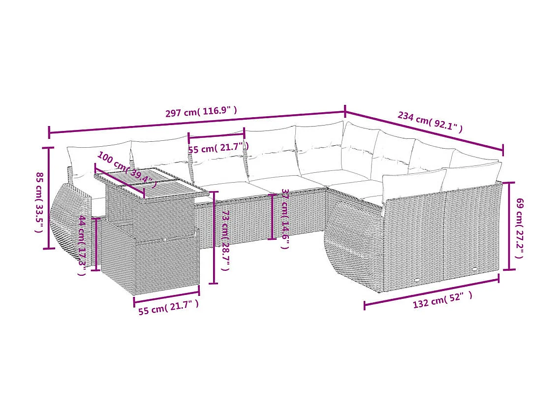 Salon de jardin avec coussins 10 pièces beige résine tressée