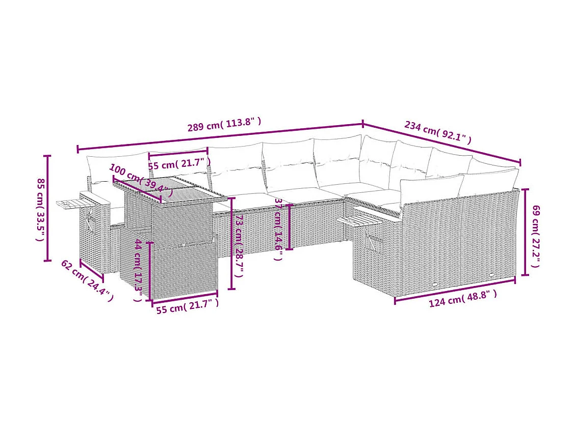 Salon de jardin 11 pièces avec coussins beige résine tressée