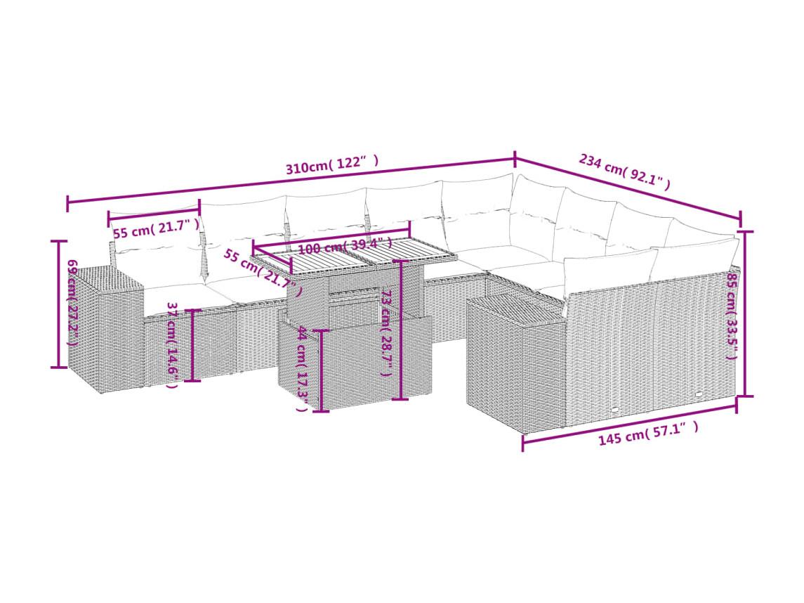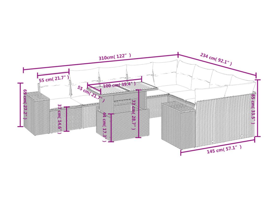 Salon de jardin avec coussins 10 pièces beige résine tressée