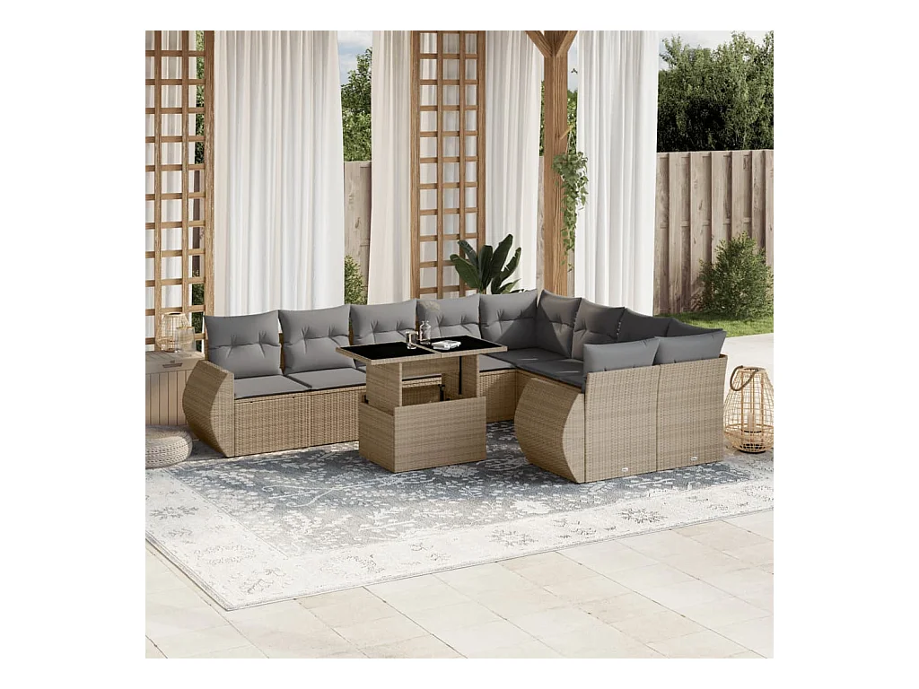 Salon de jardin avec coussins 10 pièces beige résine tressée