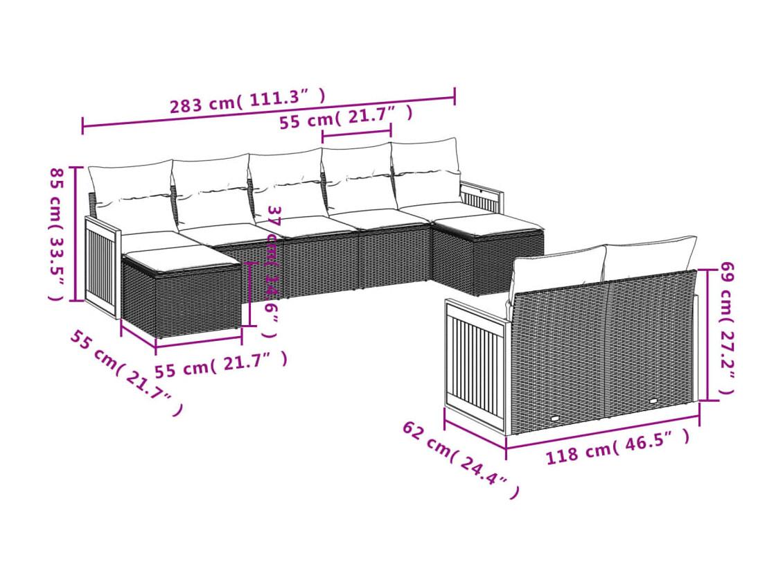 Salon de jardin et coussins 10 pièces mélange beige résine tressée
