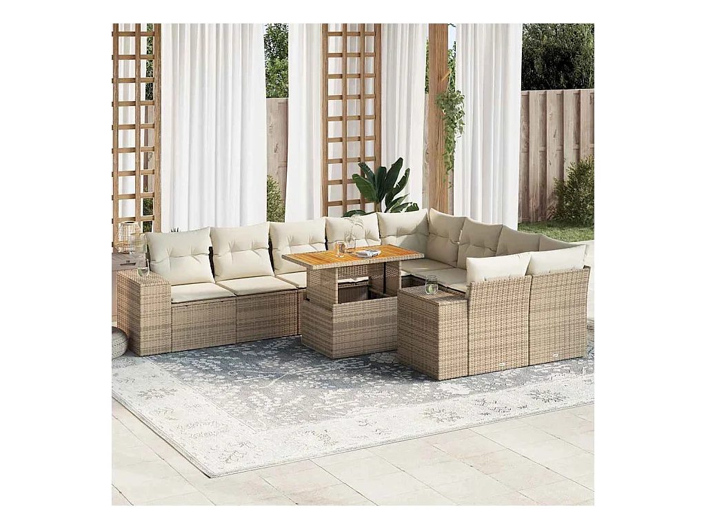 Salon de jardin avec coussins 10 pièces beige résine tressée acacia