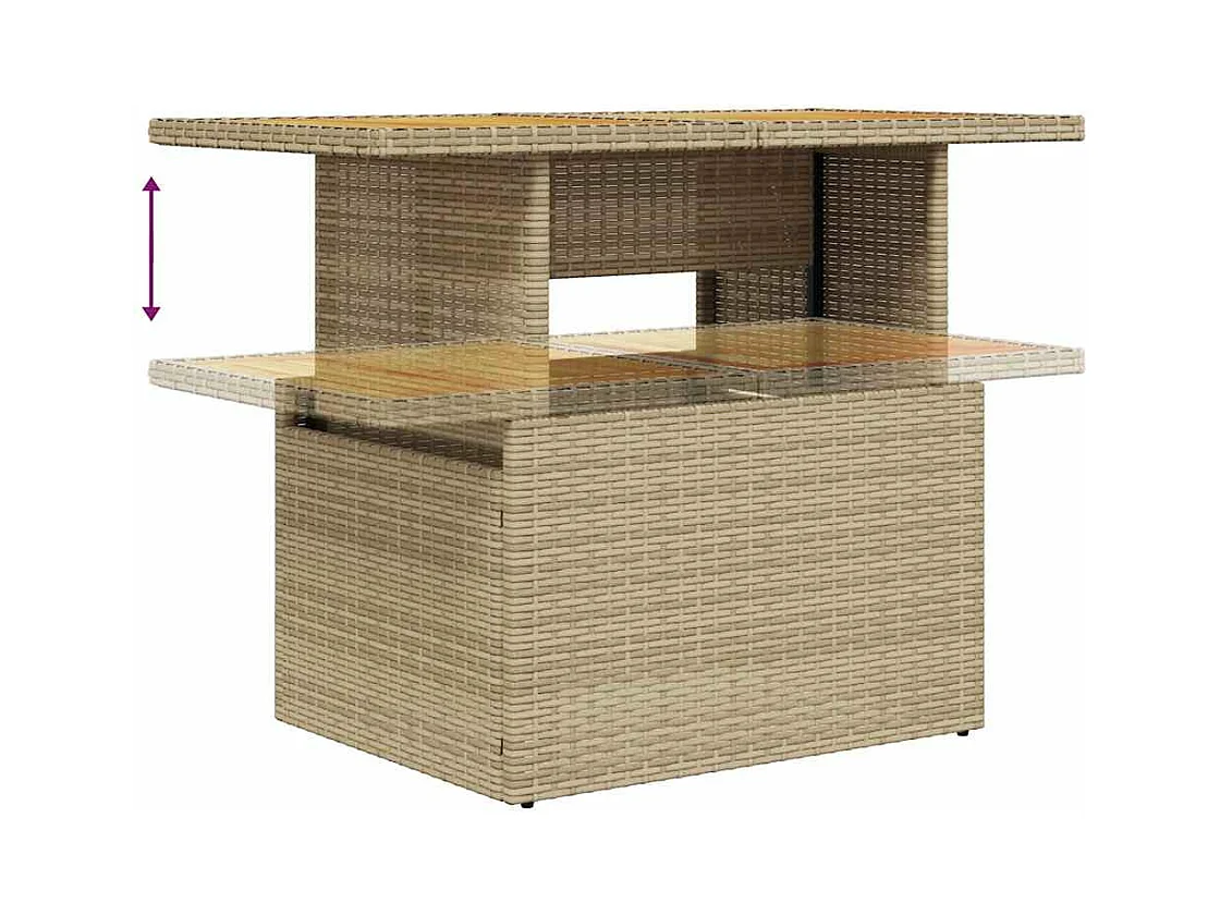 Salon de jardin 11 pièces avec coussins beige résine tressée acacia