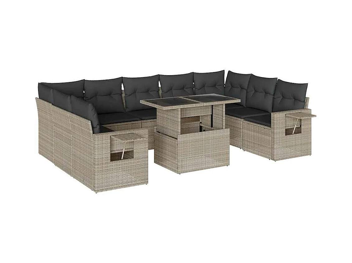 Salon de jardin avec coussins 10 pièces gris clair résine tressée