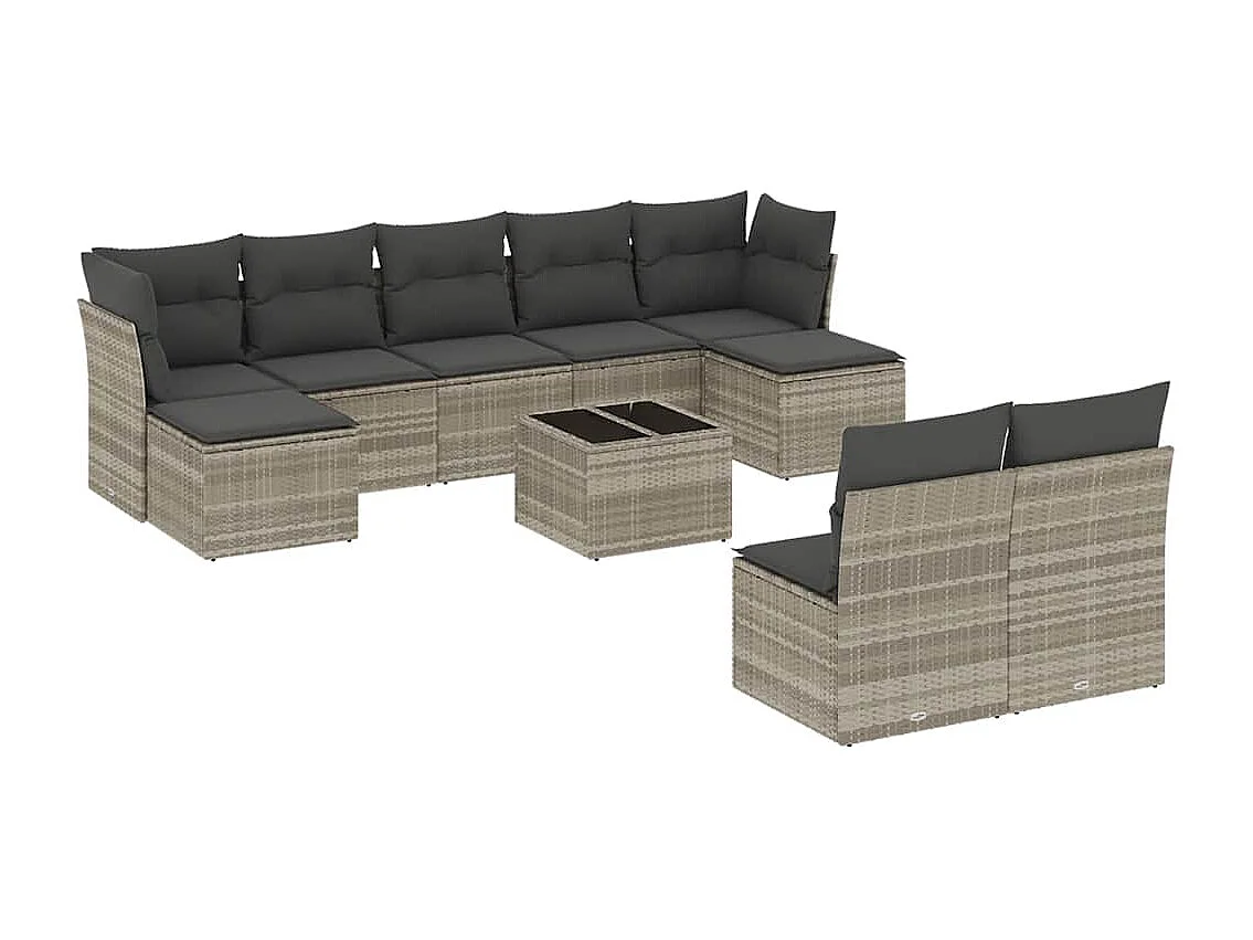 Salon de jardin avec coussins 10 pièces gris clair résine tressée