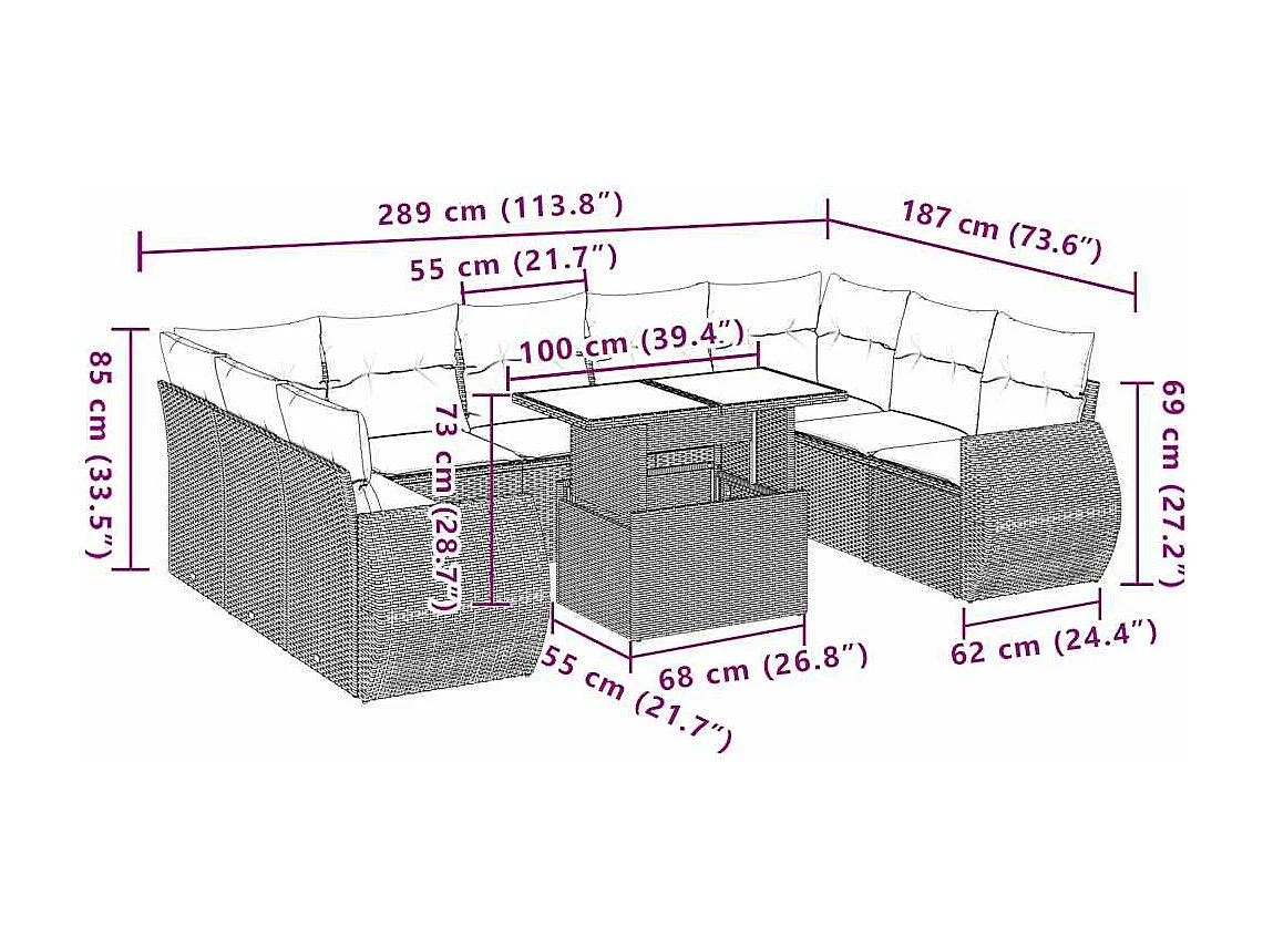 Salon de jardin 11 pièces avec coussins gris clair résine tressée