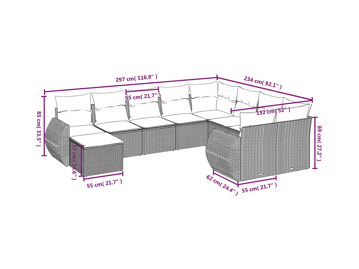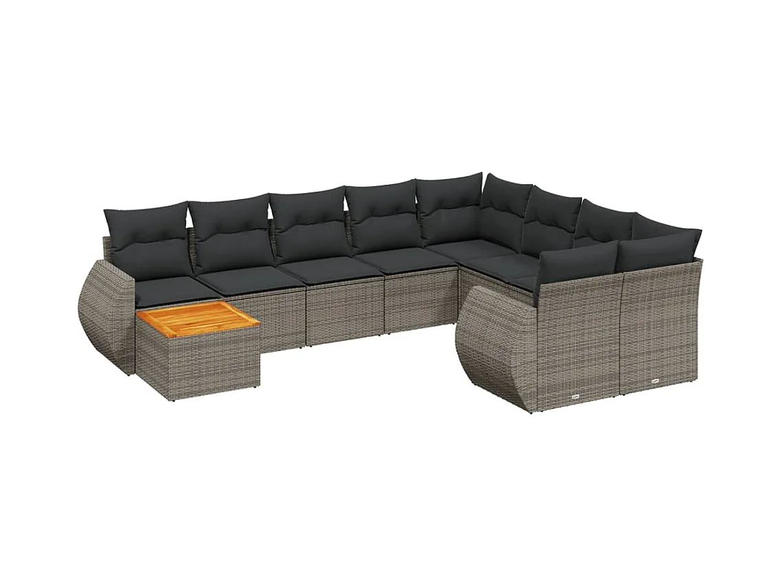 Salon de jardin avec coussins 10 pièces gris résine tressée