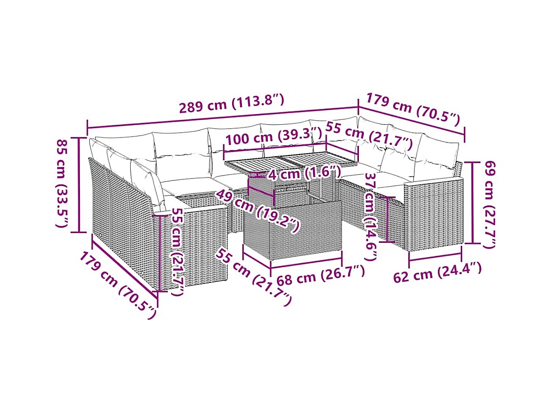Salon de jardin avec coussins 10pcs beige résine tressée acacia