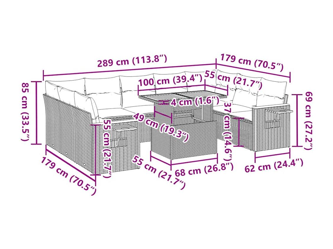 Salon de jardin avec coussins 10pcs beige résine tressée acacia