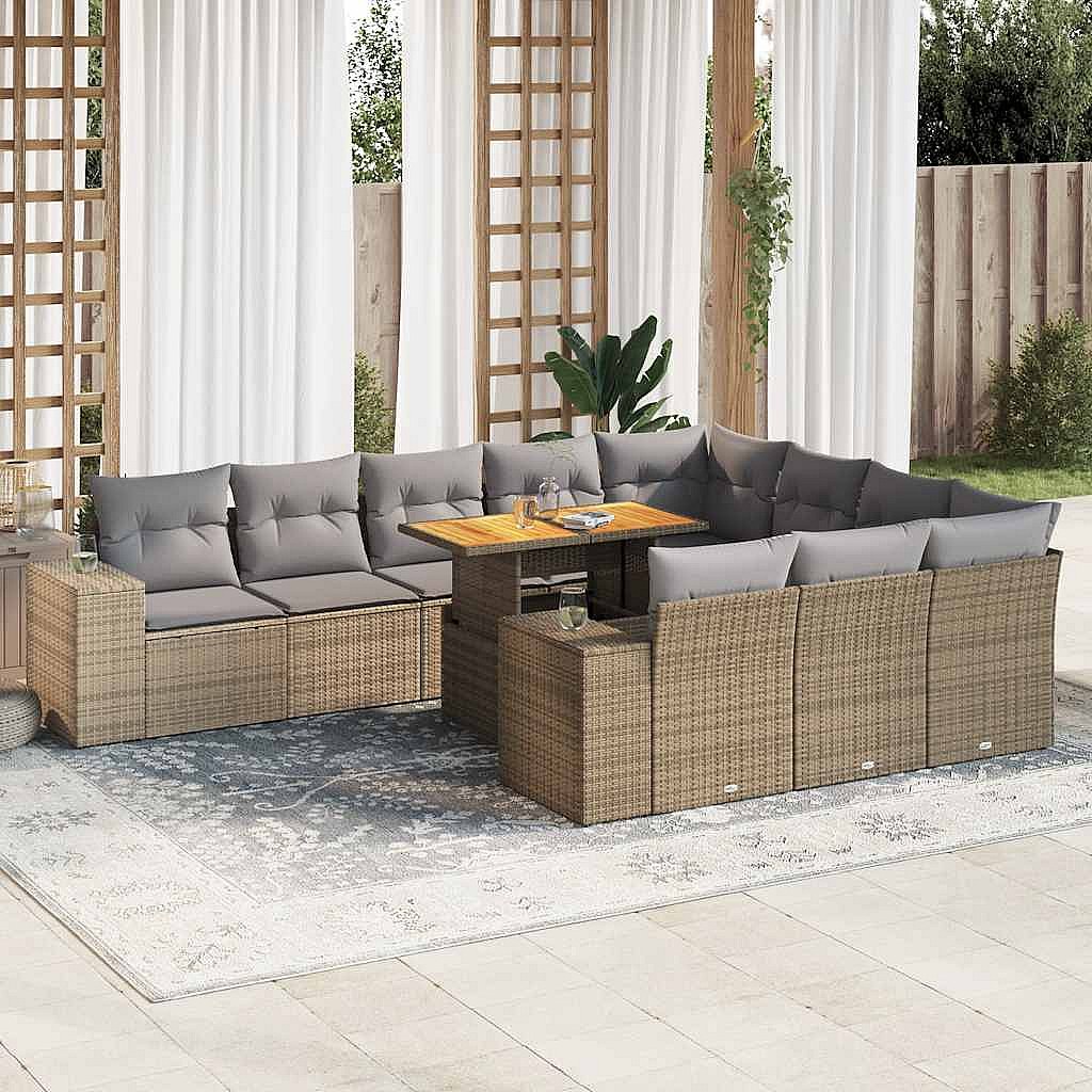 Salon de jardin avec coussins 10pcs beige résine tressée acacia