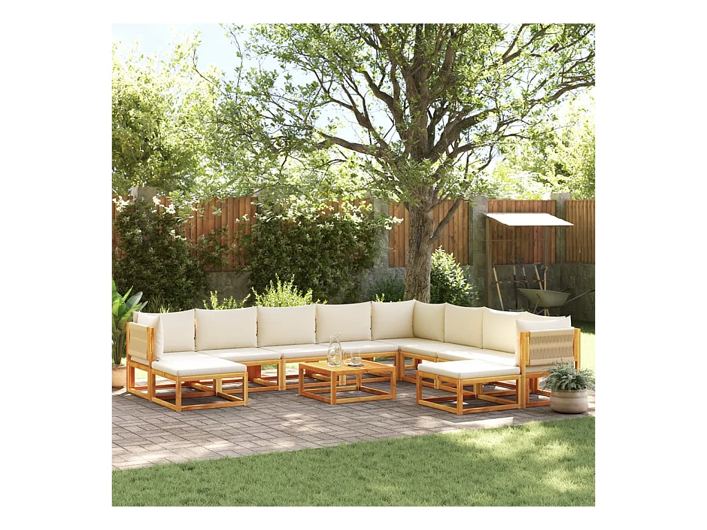 Salon de jardin avec coussins 10 pcs bois d'acacia solide