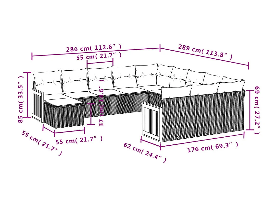 Salon de jardin avec coussins 12 pcs beige résine tressée