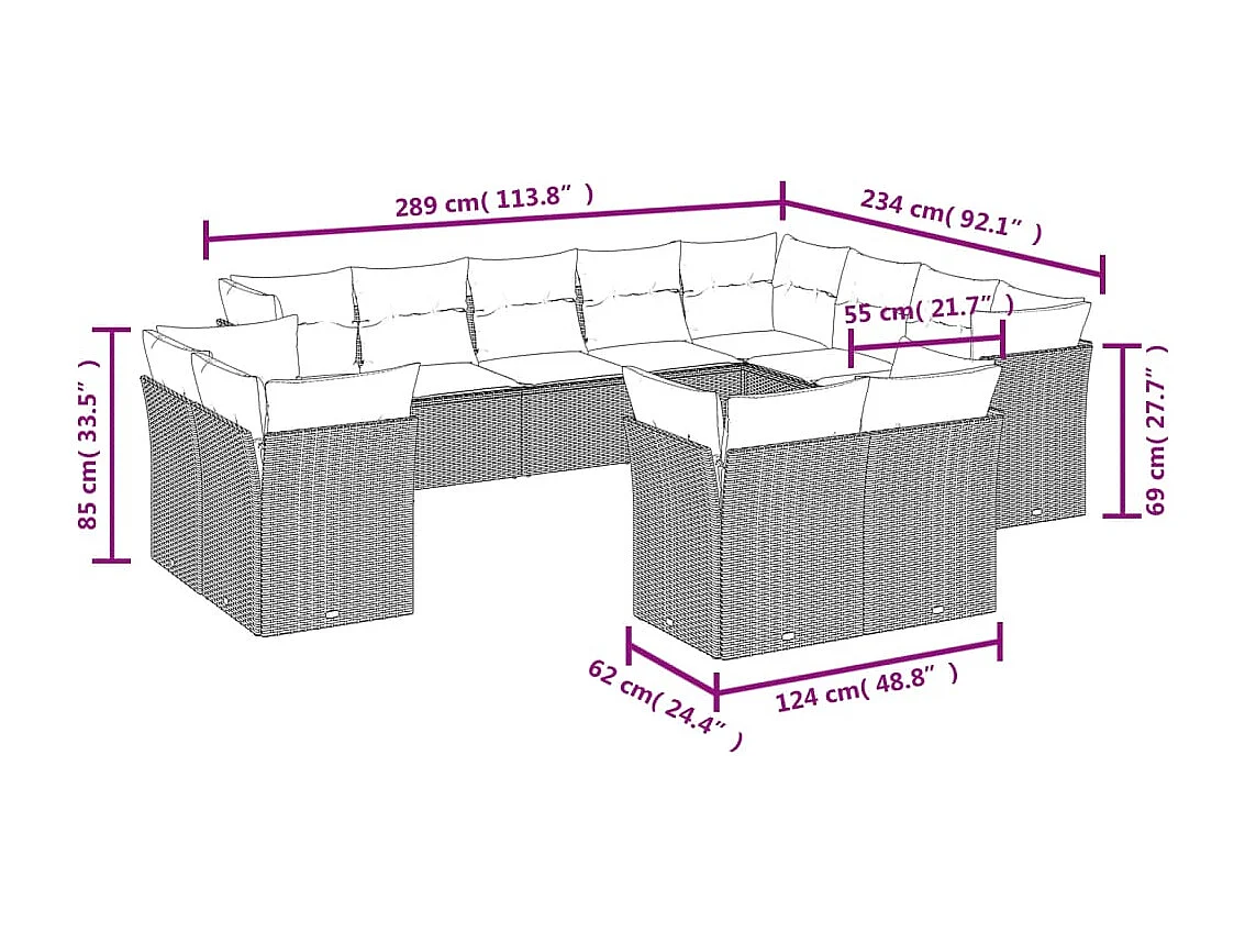 Salon de jardin avec coussins 10 pcs beige résine tressée