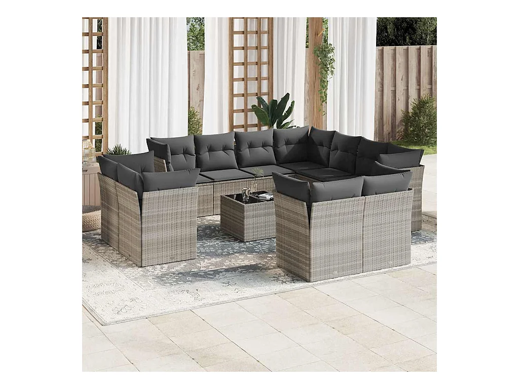 Salon de jardin avec coussins 12 pcs gris résine tressée