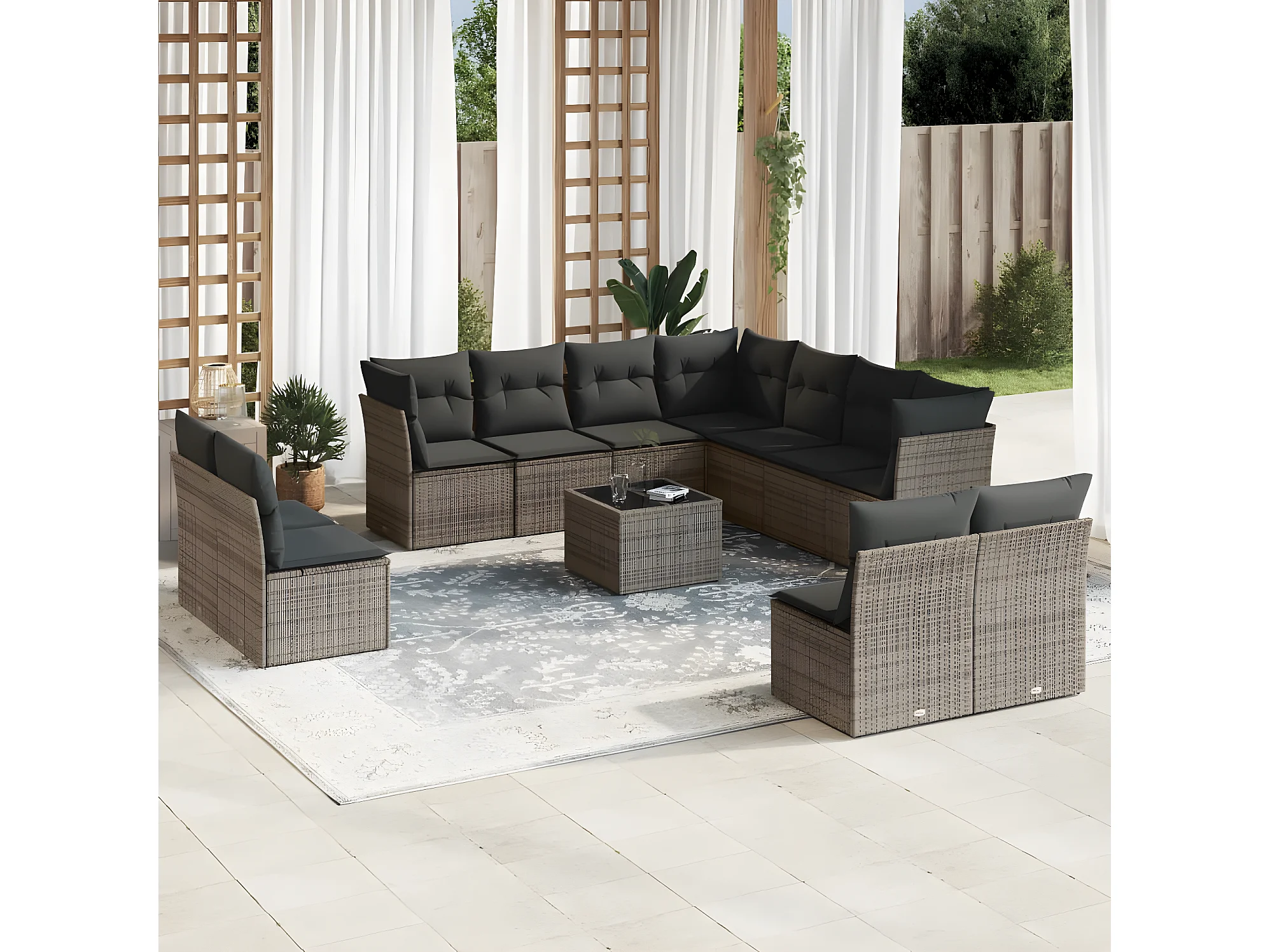Salon de jardin avec coussins 12 pcs gris résine tressée
