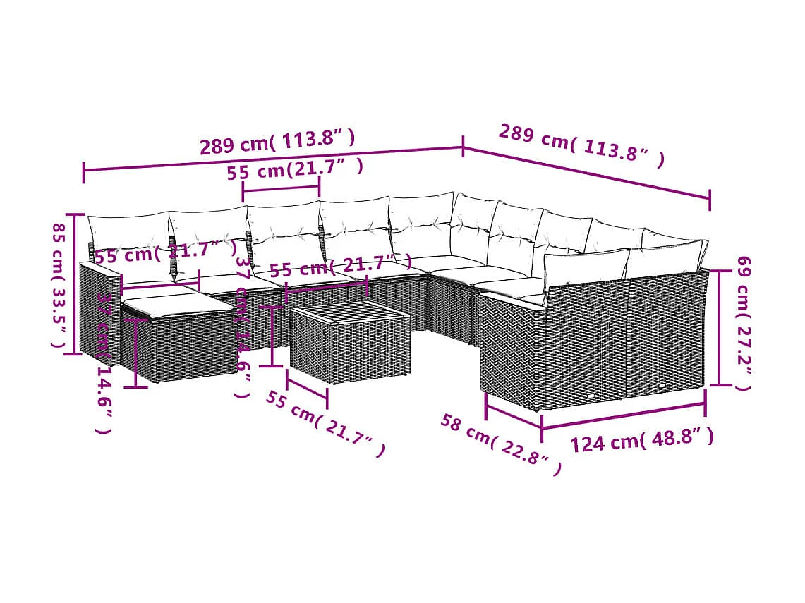 Salon de jardin avec coussins 10 pcs beige résine tressée