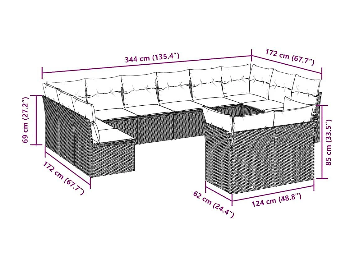 Salon de jardin avec coussins 13 pièces gris clair résine tressée