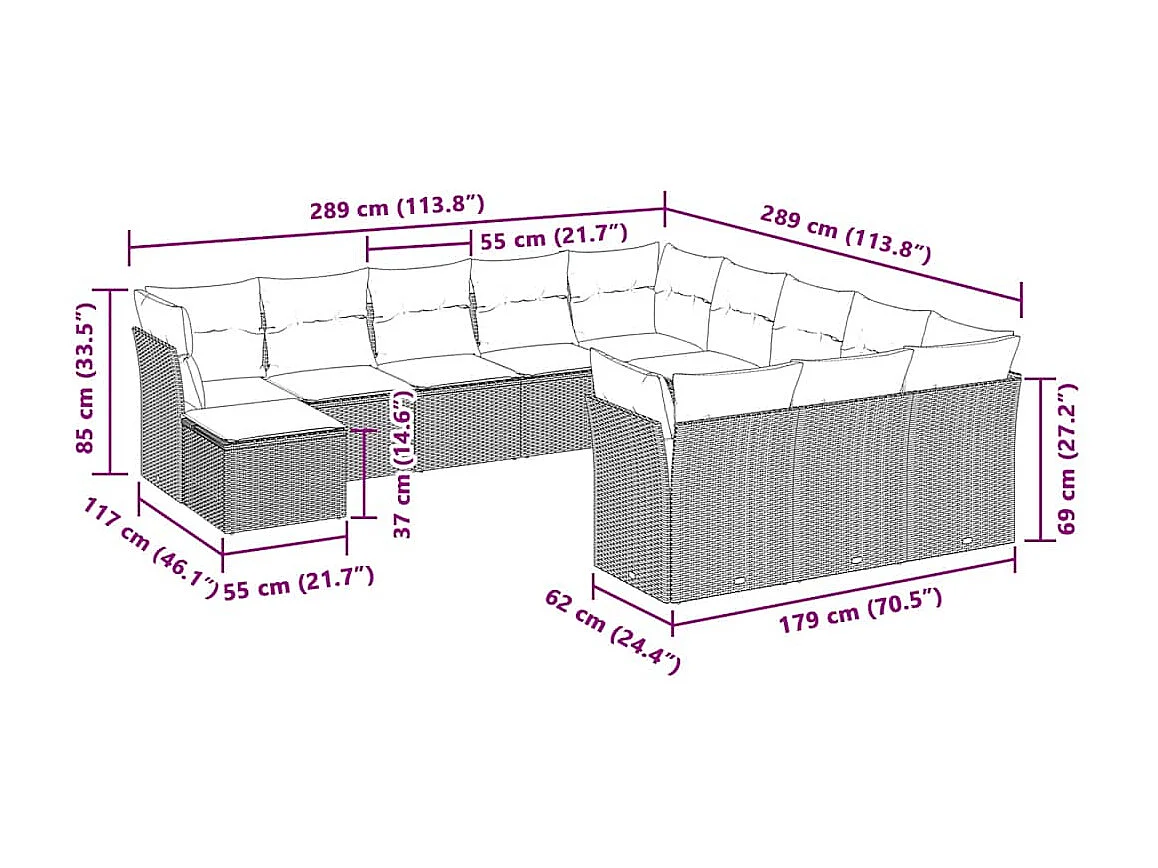 Salon de jardin avec coussins 13 pièces gris clair résine tressée