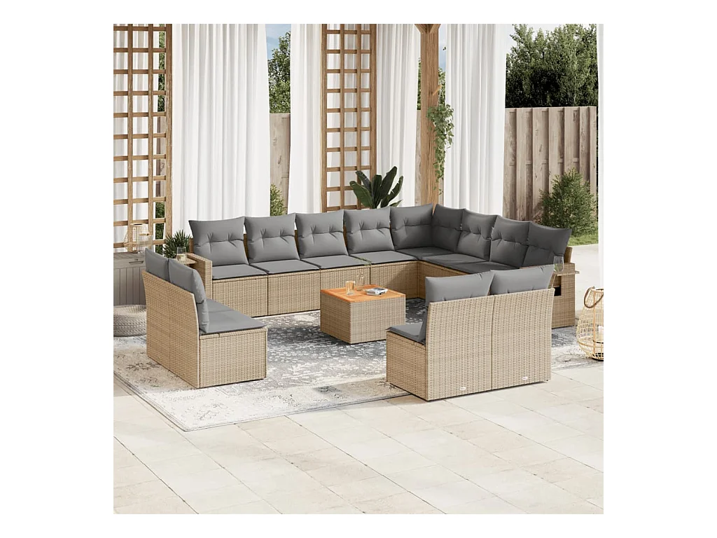 Salon de jardin avec coussins 13 pcs beige résine tressée