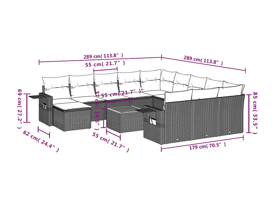 Salon de jardin avec coussins 14 pcs beige résine tressée