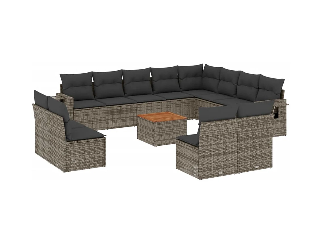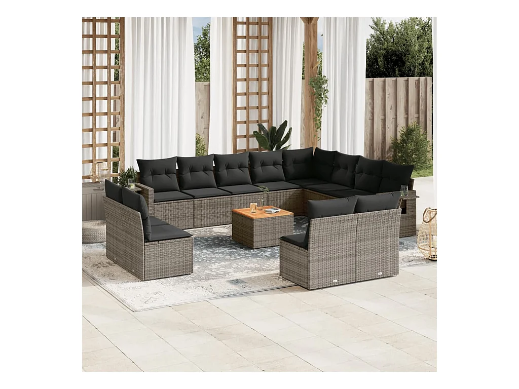 Salon de jardin avec coussins 13 pcs gris résine tressée
