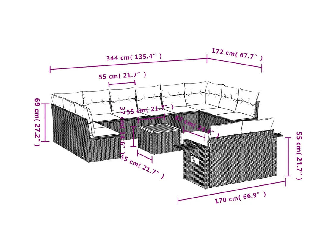 Salon de jardin avec coussins 13 pcs gris résine tressée