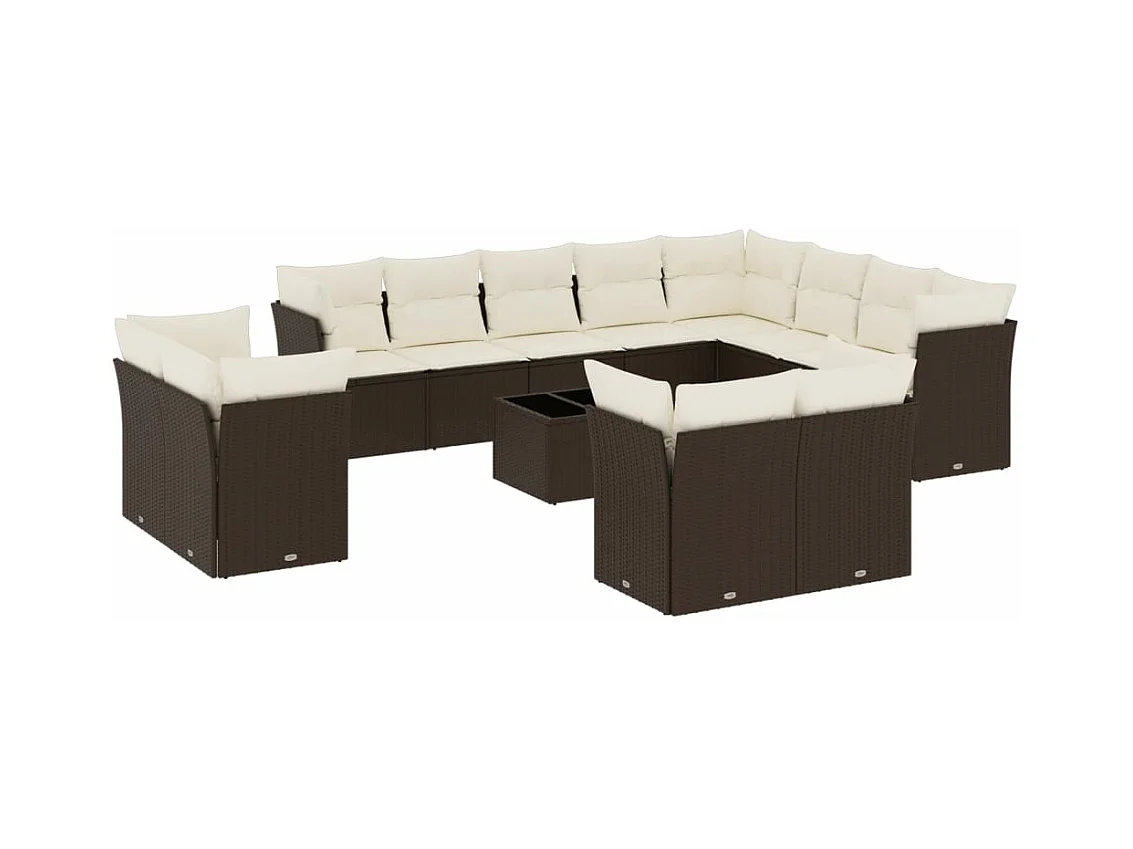 Salon de jardin avec coussins 13 pcs marron résine tressée
