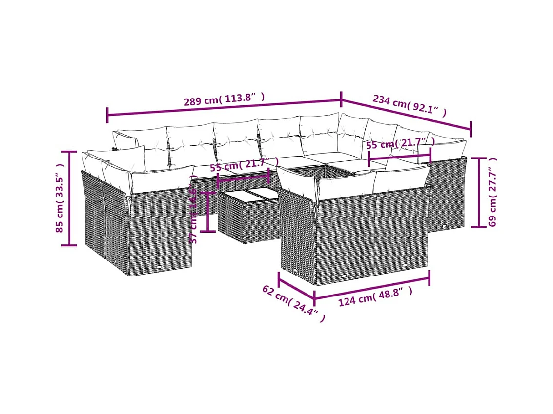 Salon de jardin avec coussins 14 pcs marron résine tressée