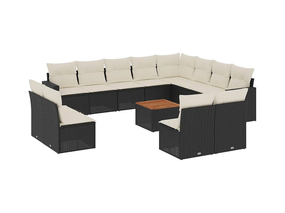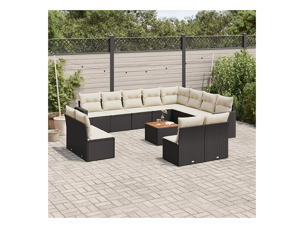 Salon de jardin avec coussins 13 pcs noir résine tressée