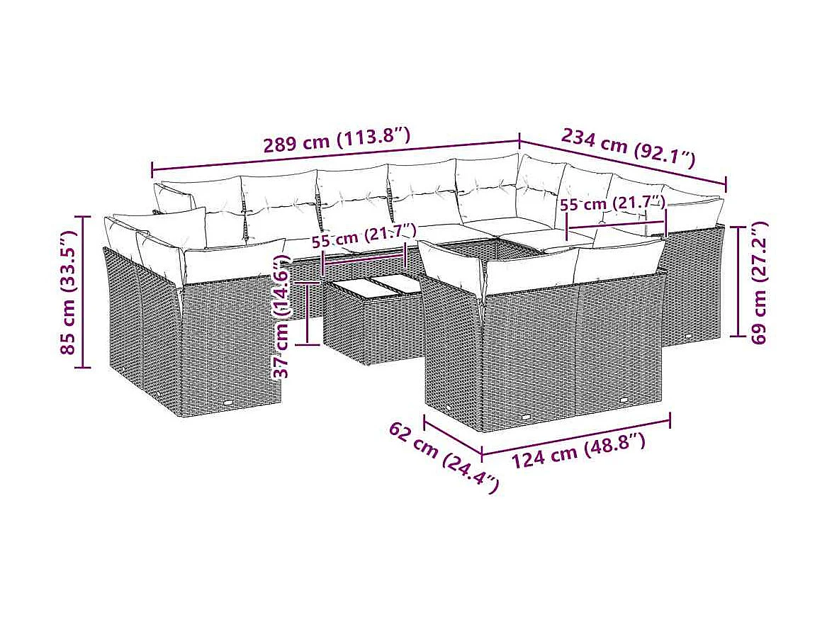 Salon de jardin avec coussins 13 pièces gris clair résine tressée