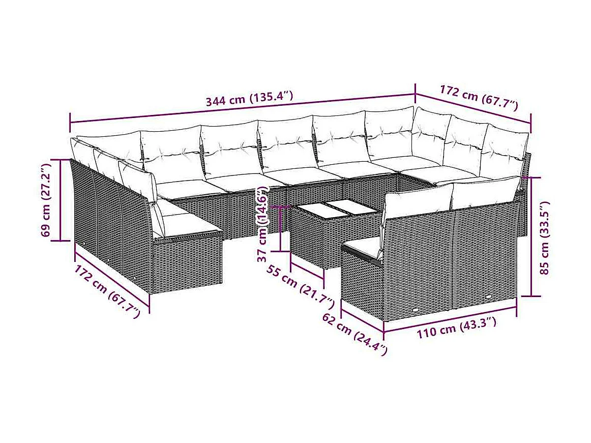 Salon de jardin avec coussins 13 pièces gris clair résine tressée