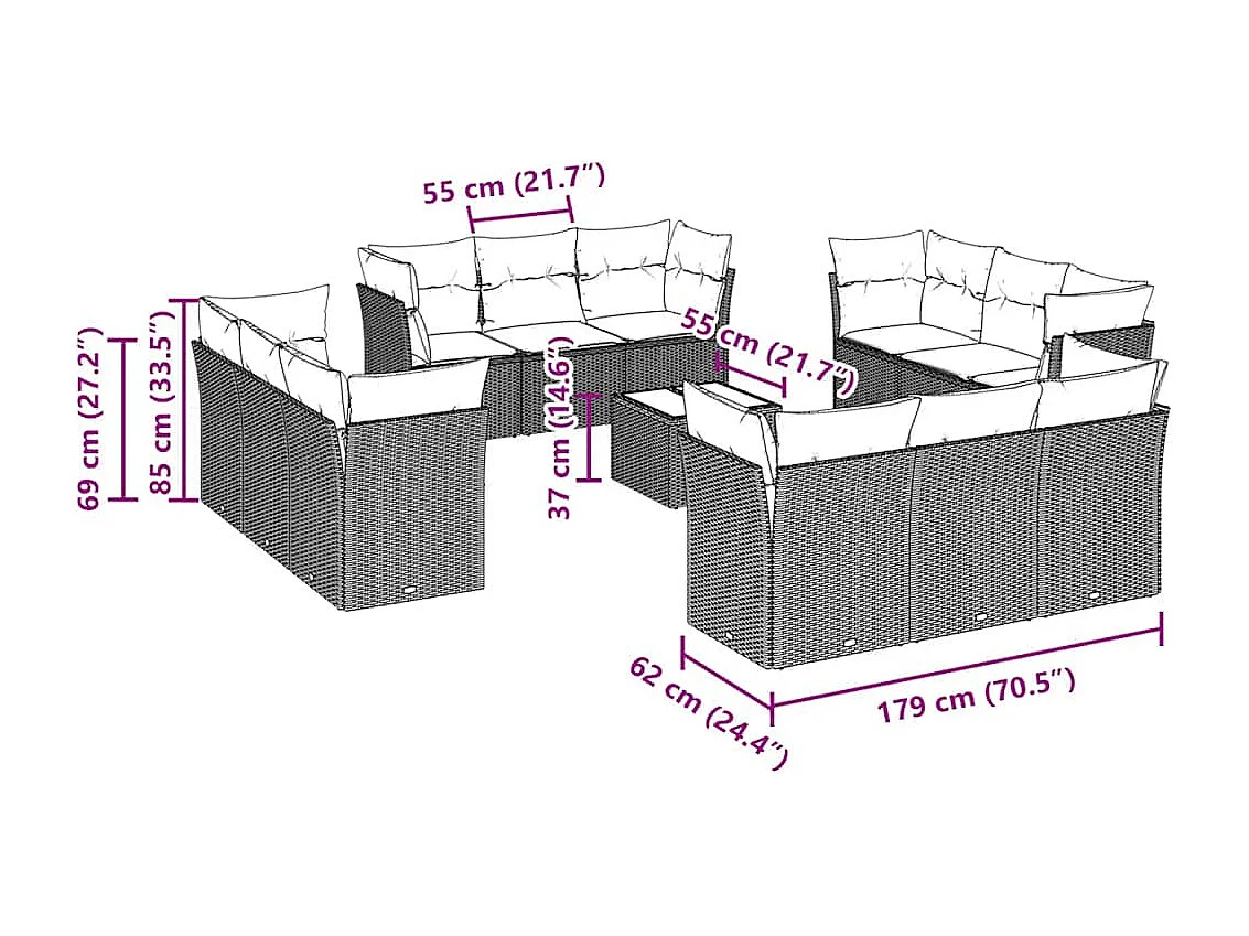 Salon de jardin avec coussins 13 pièces gris clair résine tressée