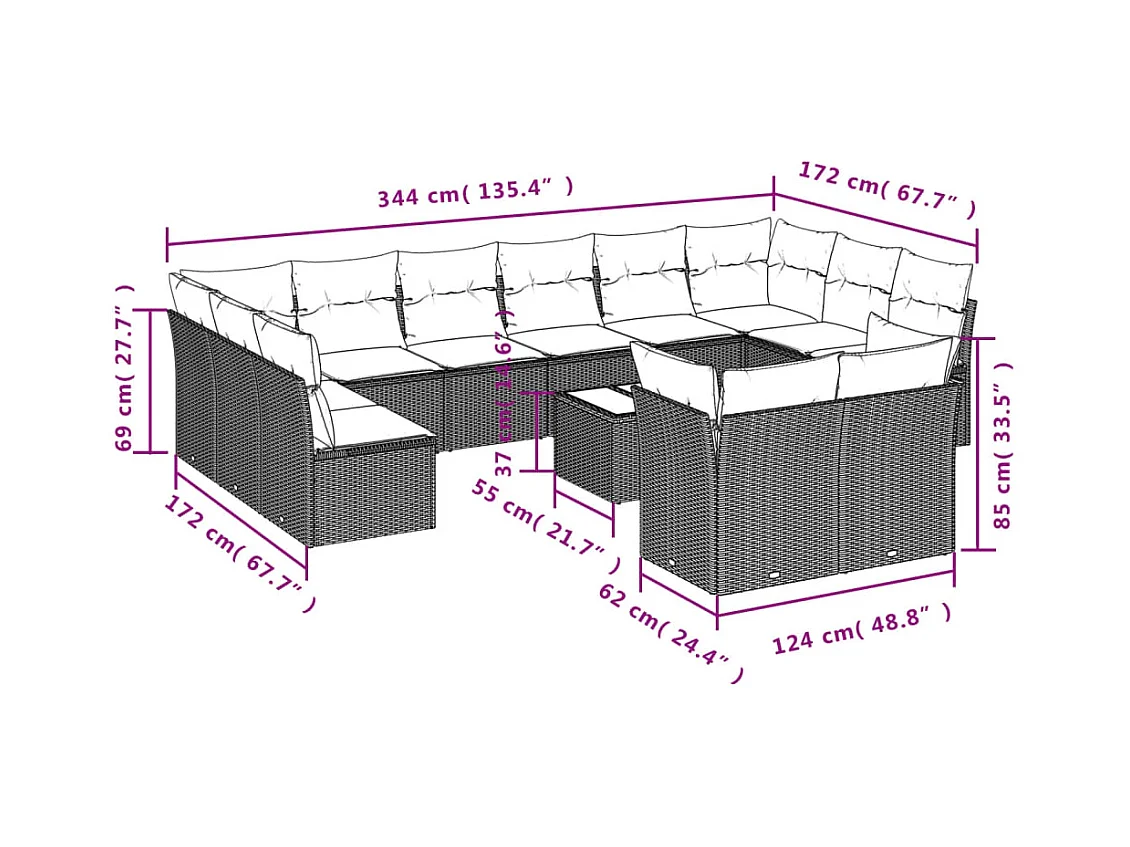 Salon de jardin avec coussins 13 pièces marron résine tressée