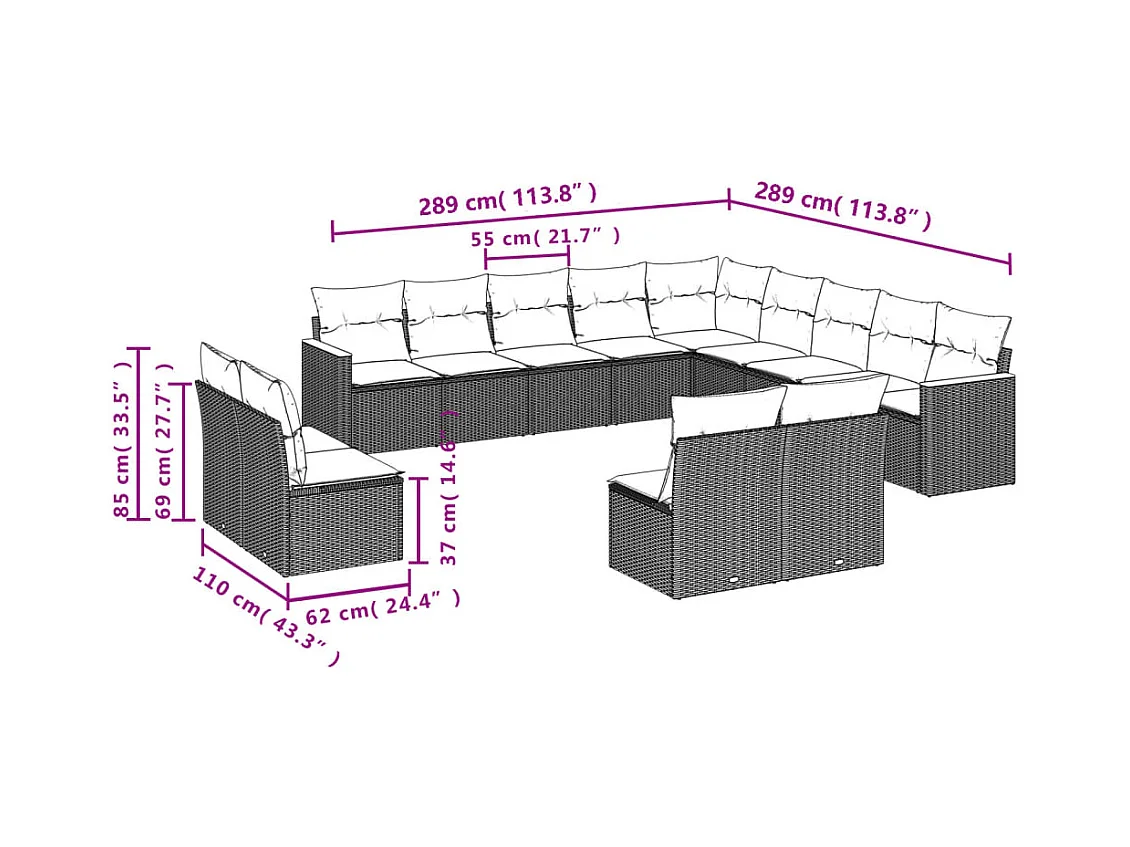 Salon de jardin avec coussins 14 pièces noir résine tressée