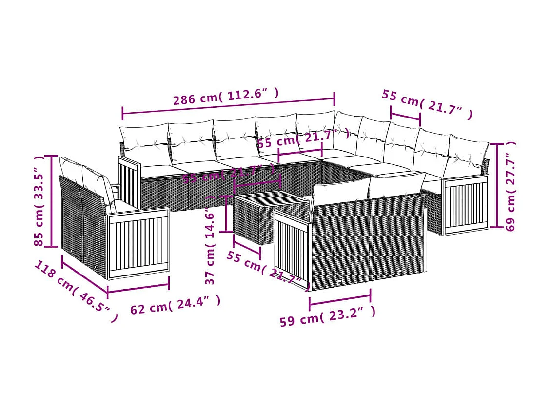 Salon de jardin avec coussins 14 pcs beige résine tressée