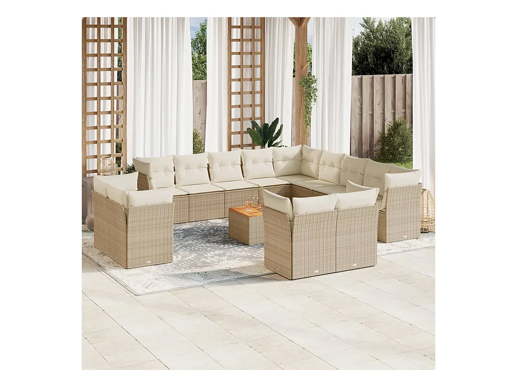 Salon de jardin 11 pièces avec coussins beige résine tressée acacia