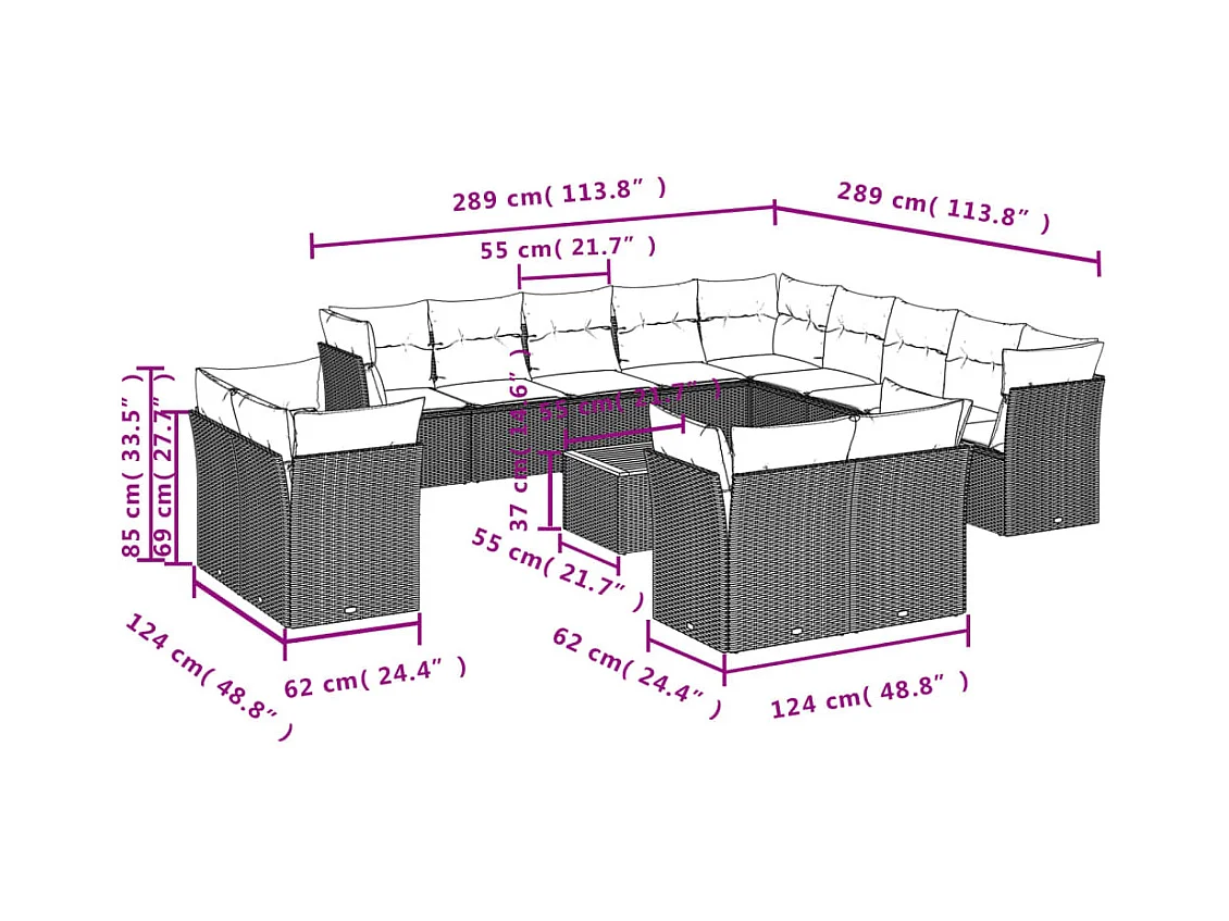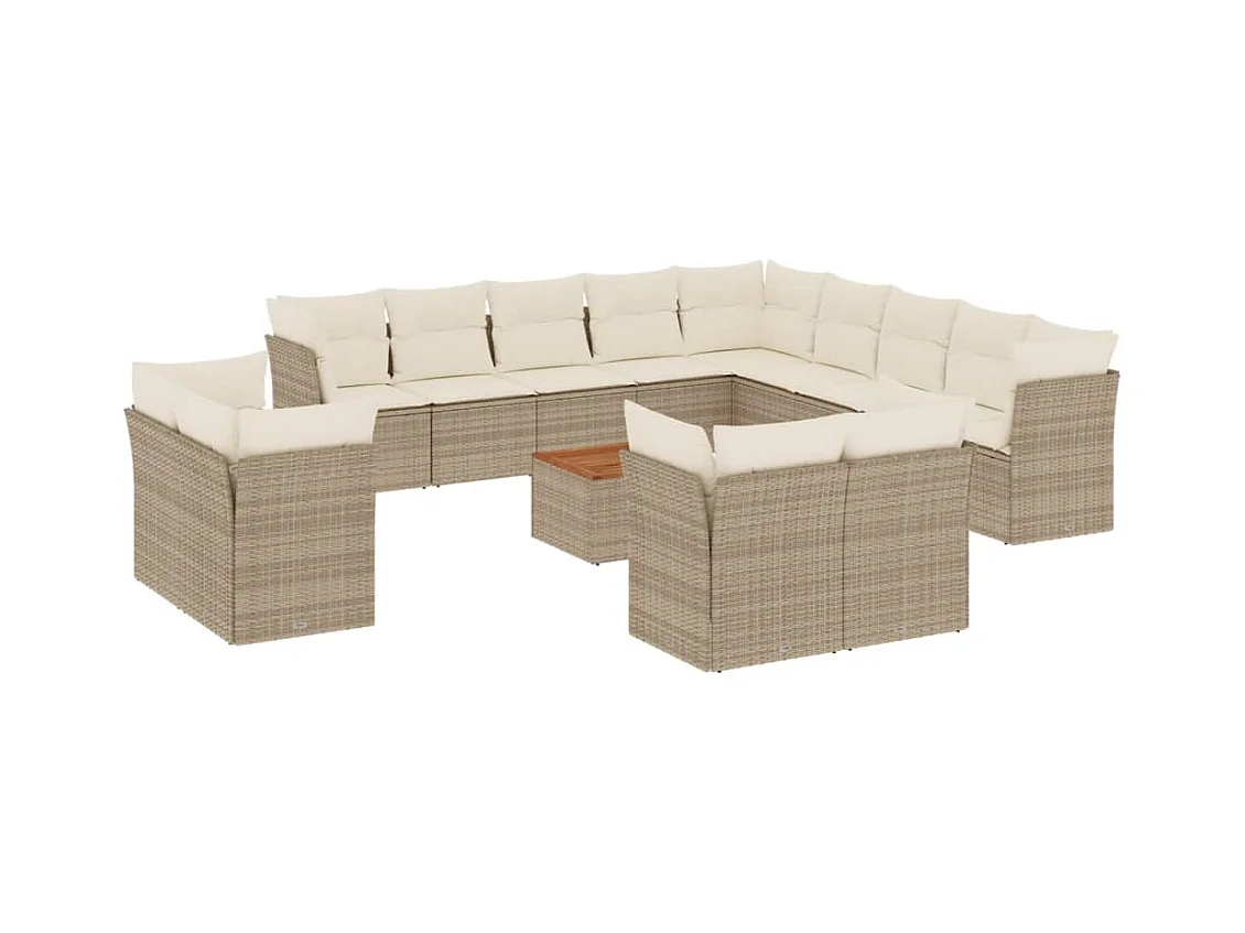 Salon de jardin avec coussins 14 pièces beige résine tressée