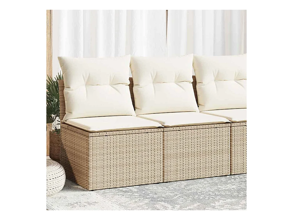 Salon de jardin avec coussins 6 pcs beige résine tressée