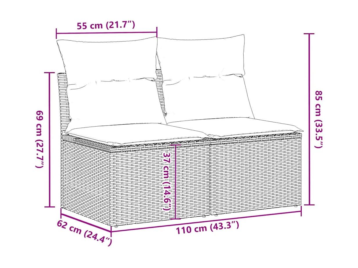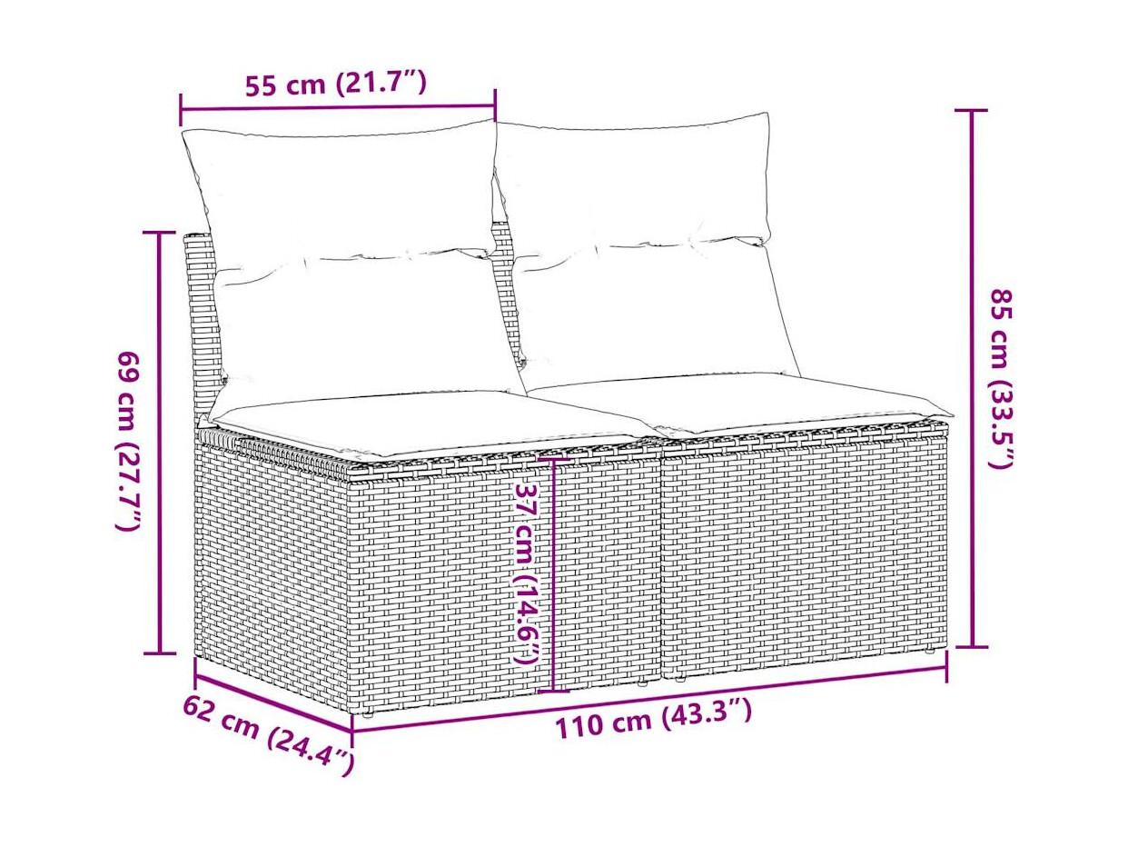 Salon de jardin avec coussins 2 pcs beige résine tressée acacia