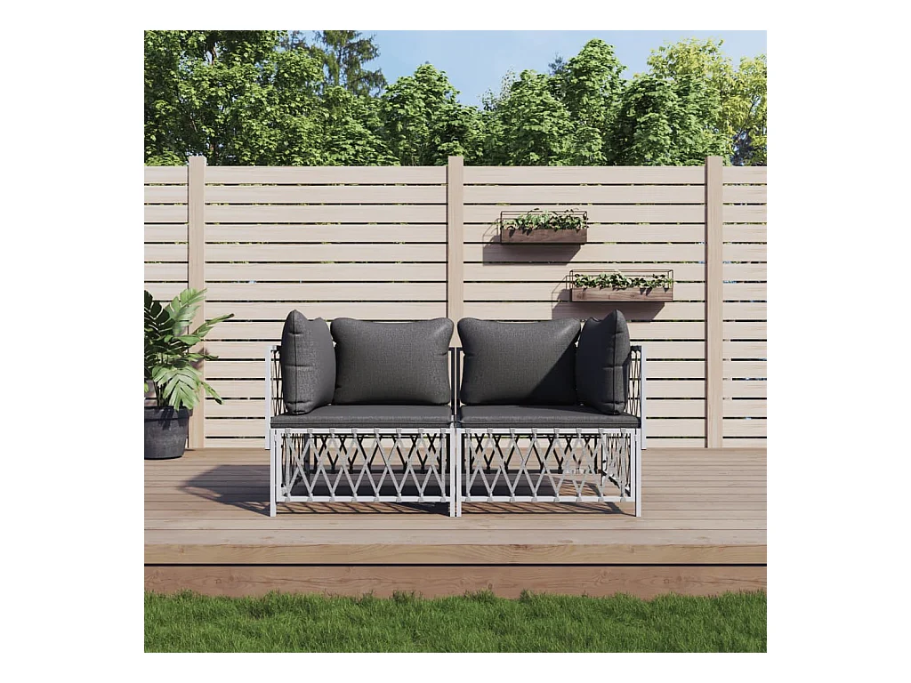 Salon de jardin avec coussins 2 pcs blanc acier BE10730